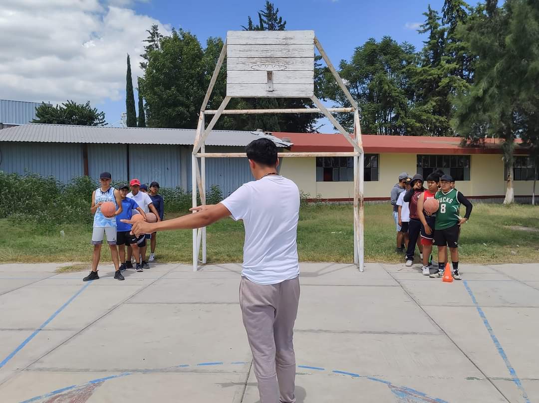 En este paraescolar lo que se hace es que se juega con dos equipos de cinco jugadores cada uno, y el objetivo es encestar la pelota en el aro del equipo contrario para sumar puntos