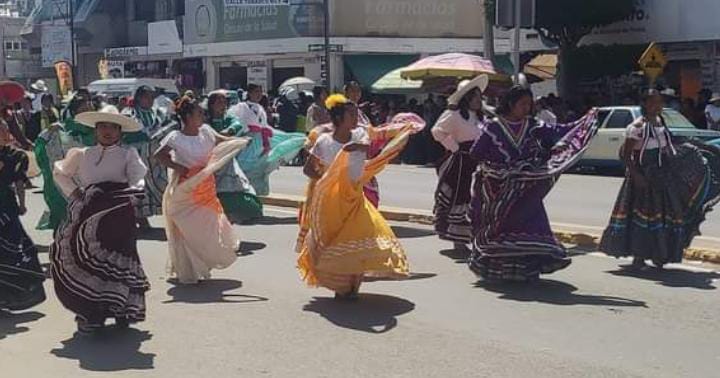 En este paraescolar las chicas bailan acompañado a banda al ritmo de la música que tocan